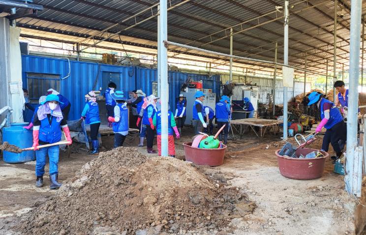 무더운 날씨 속에서도 회원들은 토사가 밀려든 우사에서 복구 작업에 구슬땀을 흘리며 일손을 보탰다.