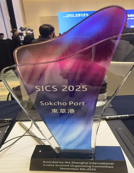 [뉴스노크=김인호 기자] 강원특별자치도와 속초시, 강원관광재단은 11월 6일 중국 상하이에서 열린 '2025 상하이 국제 크루즈 서밋(Shanghai International Cruise Summit)'에서 속초항이 ‘아시아 우수항만상(Emerging Cruise Port Development Award)’을 수상했다고 밝혔다.