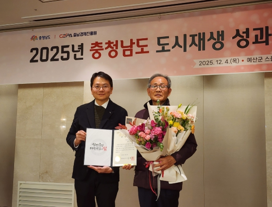 [뉴스노크=김인호 기자] 홍성군은 지난 4일 열린 ‘2025년 충남 도시재생 성과공유회’에서 광천읍 원촌마을 이두영 이장이 도시재생 업무 추진 유공으로 충청남도지사 표창을 수상했다고 밝혔다.
