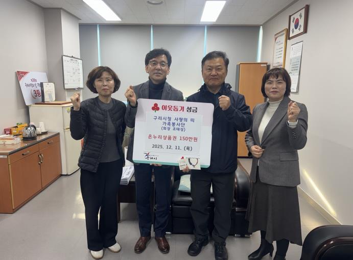 [뉴스노크=김인호 기자] 구리시 수택1동은 지난 11일 구리시청 공무원동호회인 사랑의 띠 가족봉사대로부터 온누리상품권 150만 원을 기탁받았다고 밝혔다.