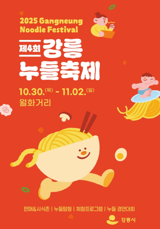 [뉴스노크=김인호 기자] 강릉시는 오는 10월 30일 목요일부터 11월 2일 일요일까지 4일간, 강릉의 대표 면 요리를 즐기고 다채로운 볼거리와 즐길 거리를 통해 강릉의 다양한 매력을 만끽할 수 있는‘2025 제4회 강릉 누들 축제’를 개최한다.