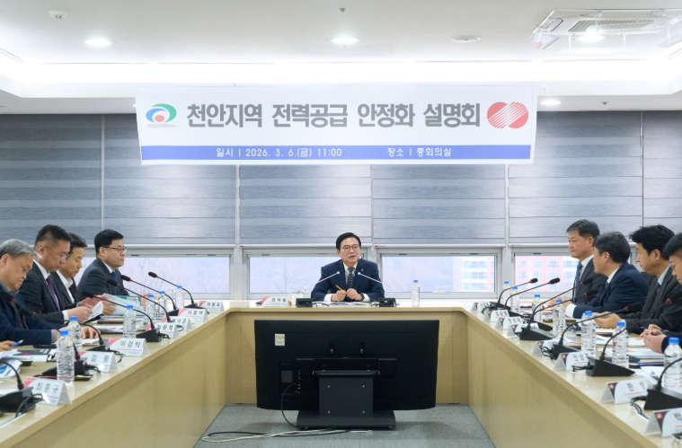 [뉴스노크=김인호 기자] 천안시는 6일 시청 중회의실에서 한국전력공사 대전세종충남본부와 함께 ‘천안지역 전력공급 안정화를 위한 설명회’를 개최하고 중장기 전력 인프라 확충 방안을 논의했다.