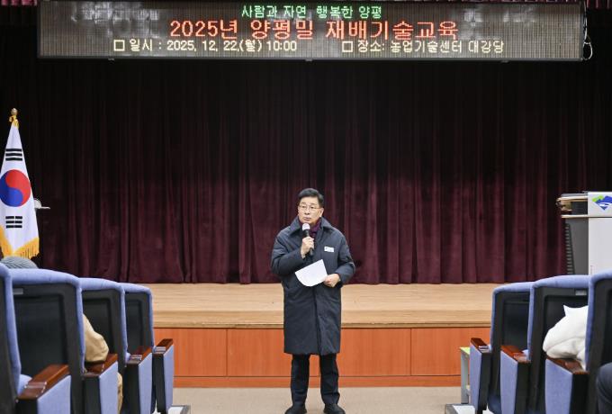 이번 교육에는 양평밀 재배 농업인과 재배 희망 농업인 60명이 참석했으며, 2026년 양평밀산업 육성 계획 설명과 동절기 밀 재배 관리부터 수확·건조, 주요 병해충 방제까지 체계적인 재배기술 교육이 이뤄졌다.