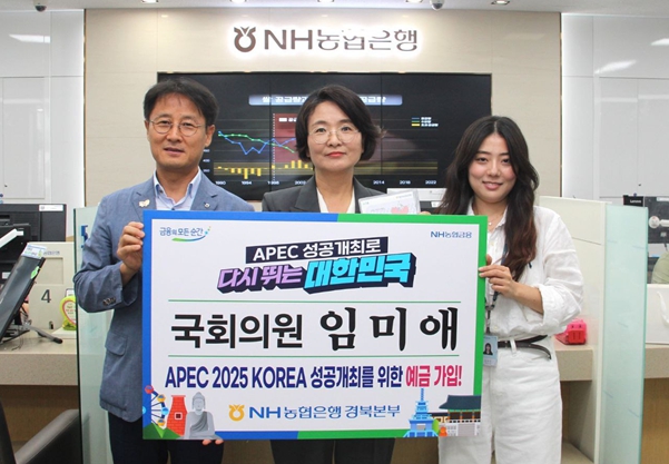 [뉴스노크=김인호 기자] 더불어민주당 임미애 의원(대구경북, 비례대표)이 올 가을 경주에서 열리는 '아시아태평양경제협력체(APEC) 정상회의' 성공개최를 기원하며 NH농협은행의 관련 예금상품에 가입했다.