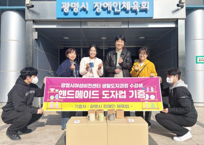 [뉴스노크=김인호 기자] 광명시 여성비전센터는 지난 6일 제54기 정규과정 ‘생활도자공예품 제작과정’ 수강생과 지도강사가 함께 만든 머그컵 72개를 광명시 장애인체육회에 전달했다.