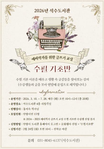 | ▲ 안양시 석수도서관, 2026년 ‘예비작가를 위한 글쓰기 교실’ 운영 |