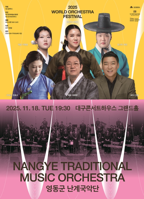 [뉴스노크=김인호 기자] (재)대구문화예술진흥원 대구콘서트하우스는 오는 11월 18일 저녁 7시 30분, 그랜드홀에서 ‘2025 월드오케스트라페스티벌’의 특별한 무대로 ‘영동군 난계국악단’의 공연을 개최한다.