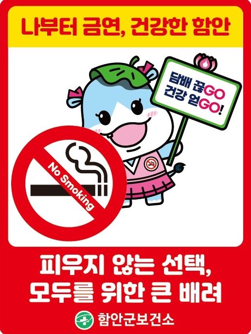 이번 표지판은 상단에 군의 금연 슬로건 ‘나부터 금연, 건강한 함안’을 담고 군 금연 캐릭터 ‘금연좋아! 하마니’와 금연 표식을 함께 배치해 누구나 쉽게 금연 메시지를 인식할 수 있도록 디자인됐다.