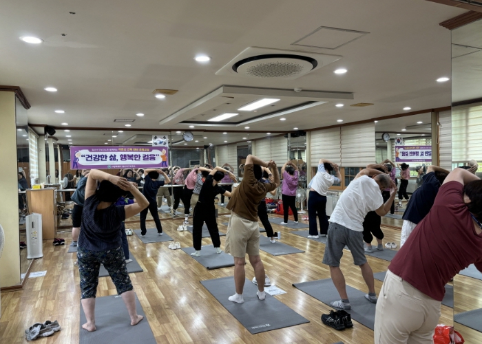 | ▲ 어르신들이 2025년 ‘건강한 삶, 행복한 걸음’프로그램에 참여해 스트레칭을 하고 있다. |