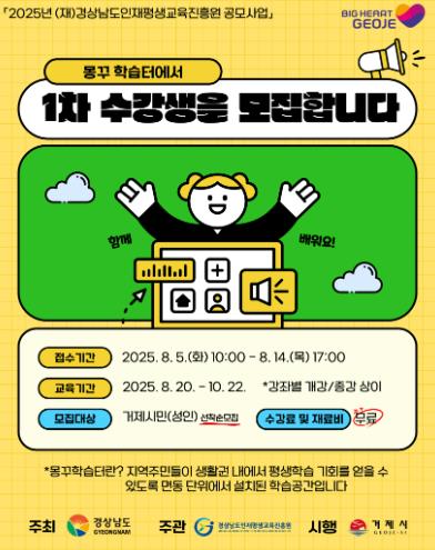 [뉴스노크=김인호 기자] 거제시가 지난 3월 (재)경상남도인재평생교육진흥원이 주최한 ‘2025년 면동 평생학습센터 구축 지원사업’에 선정되어 도비 2,500만원을 확보했다.