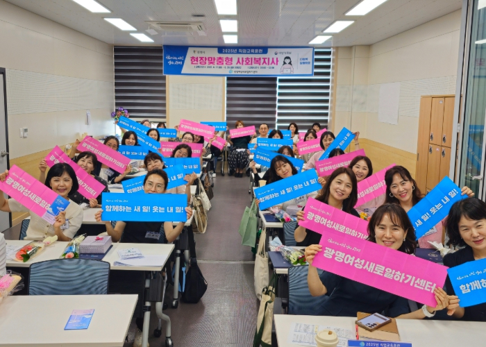 [뉴스노크=김인호 기자] 광명시는 26일 광명여성새로일하기센터 4층 너른교실에서 ‘2025년 직업교육훈련 현장맞춤형 사회복지사 양성과정’ 수료식과 일자리협력망 회의를 개최했다.