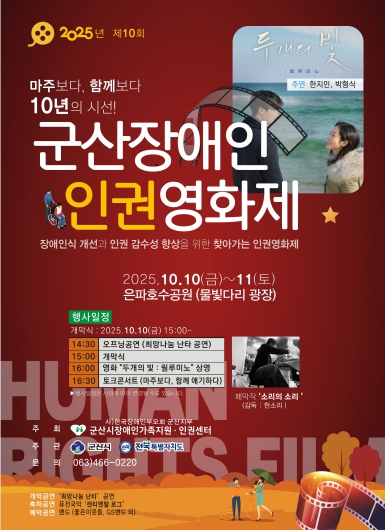 [뉴스노크=김인호 기자] 군산시 장애인가족지원인권센터가 10월 10일부터 11일까지 은파호수공원 물빛다리 광장에서 군산시민을 대상으로 장애인 인식개선 및 인권의식 함양을 위한 2025년 제10회 군산장애인인권영화제를 개최한다.