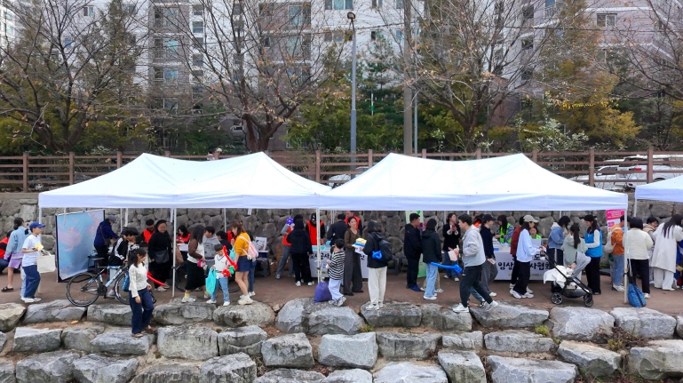 이번 부스는 ‘빗물받이 캠페인’을 주제로 운영됐으며 ▲빗물받이 관리 홍보 ▲시민 인식 설문조사 ▲키링·에코백 만들기 등 친환경 프로그램 운영 ▲폴라로이드 즉석카메라 촬영 이벤트 등 다채로운 프로그램으로 진행됐다.