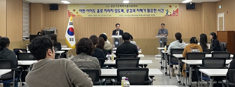 [뉴스노크=김인호 기자] 경산교육지원청 경산기초학력거점지원센터는 2025년 10월 22일(수) 경산교육지원청 학생교육지원관 2강당에서 경산·청도 지역 초등학교 학부모 80여 명을 대상으로 학부모 연수회를 열었다.