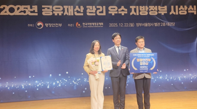 [뉴스노크=김인호 기자] 대전시는 행정안전부 주관‘2025년 공유재산 우수 지자체 시상식’에서 '우수사례 경진대회 부문'행정안전부 장관 기관표창을 수상했다.