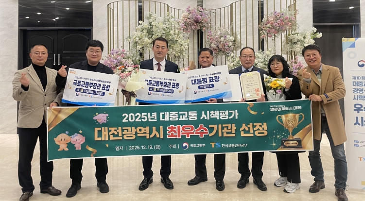 [뉴스노크=김인호 기자] 대전시는 국토교통부 주관 2025년 대중교통 시책평가에서 최우수기관으로 선정돼 19일 장관 표창을 수상했다.