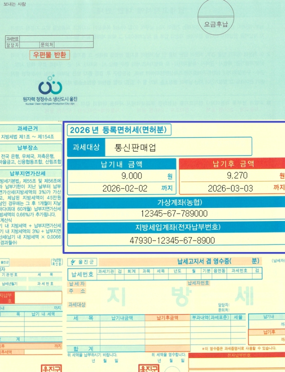 군은 이번 등록면허세 고지서는 고령층과 시각 취약계층을 배려하기 위해 글자 크기를 대폭 키운‘큰글씨 지방세 고지서’를 제작·발송했다.