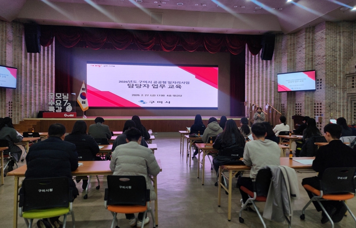[뉴스노크=김인호 기자] 구미시는 지난 27일 시청 대강당에서 ‘2026년 구미시 공공형일자리 사업 담당자 업무교육’을 실시하고 상반기 사업 추진에 본격 돌입했다.