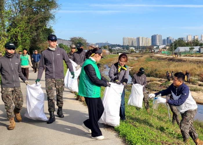 [뉴스노크=김인호 기자] 새마을문고 양주시지부는 10월 21일 오전 8시 50분부터 약 2시간 동안 독수리병영도서관 장병들과 함께 부대 앞 샘내 일대 천변에서 ‘건강과 환경을 지키는 줍킹데이’ 행사를 성황리에 개최했다.