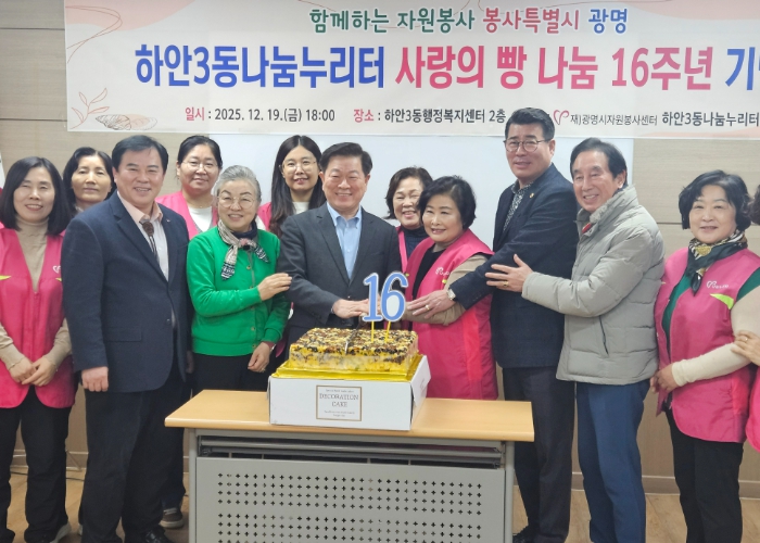 [뉴스노크=김인호 기자] 광명시 하안3동 나눔누리터는 광명시자원봉사센터, 하안3동 행정복지센터와 함께 지난 19일 하안3동 행정복지센터 2층 회의실에서 ‘사랑의 빵 나눔’ 16주년 기념식을 개최했다.