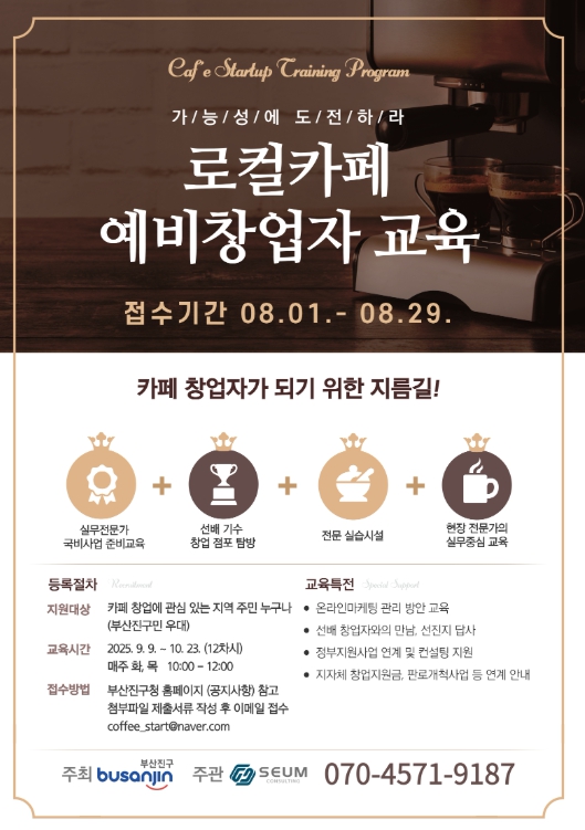 이 사업은 전포동, 서면 등지에 소규모 로컬카페 창업을 희망하는 예비창업자의 실무역량을 강화하기 위한 것이다.