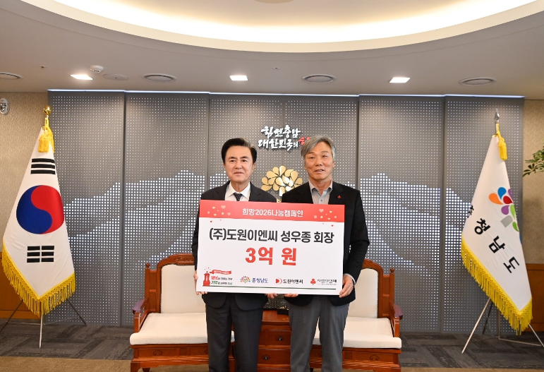 [뉴스노크=김인호 기자] 충남도는 31일 ㈜도원이엔씨로부터 이웃사랑 성금 3억원을 전달받았다고 밝혔다.