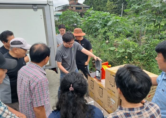 | ▲ 농업인들에게 농작업 안전편이장비 컨설팅을 하고 있다. |