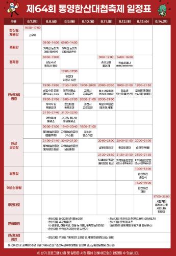 이번 축제는‘한산도!! 최초의 통제영!’이라는 주제로 역사와 문화, 시민과 관광객이 함께 어우러지는 다채로운 프로그램을 선보일 예정이다.