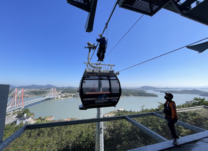 [뉴스노크=김인호 기자] 가을여행주간을 맞이하여 전남도로 많은 가족단위 여행객들이 방문이 많아지면서 안전에 대한 관심이 높아지고 있는 가운데 명량해상케이블카는 지난 10월 20일 비상상황 대응 능력을 강화하기 위해 진도소방서와 함께 케이블카 합동 구조훈련을 실시했다.