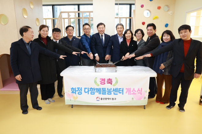 [뉴스노크=김인호 기자] 울산 동구는 12월 24일 오전 10시 30분 화진4가길 20, 3층에서 김종훈 동구청장과 지역 주민 100여 명이 참석한 가운데 ‘화정다함께돌봄센터 개소식’을 개최했다.