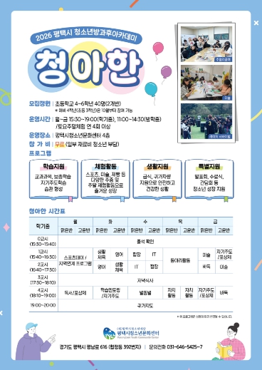 | ▲ 2026 평택시 청소년방과후아카데미 ‘청아한’ 신입생 모집 |