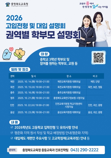 ▲ 충북교육청, 찾아가는 2026. 고입전형 및 대입 학부모 설명회 개최 |