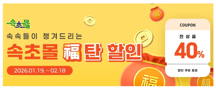 속초몰, 설맞이 전 상품 40% 할인쿠폰 발급 이벤트 실시
