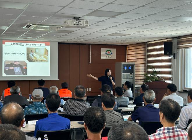 이번 교육은 마을을 대표하는 이장, 부녀회장, 새마을지도자 등 마을조력자들이 응급상황에 신속히 대응할 수 있도록 실습 중심의 심폐소생술(CPR) 교육과 더불어, 재난 발생 시 신속한 대피를 유도할 수 있는 ‘마을순찰대’ 역할 수행 교육도 함께 진행된다.