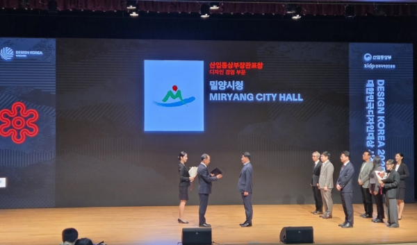 [뉴스노크=김인호 기자] 경남 밀양시는 12일 서울 코엑스 컨퍼런스룸에서 열린 2025 대한민국디자인대상 시상식에서 디자인경영 부문 산업통상부장관 표창을 수상했다고 밝혔다.