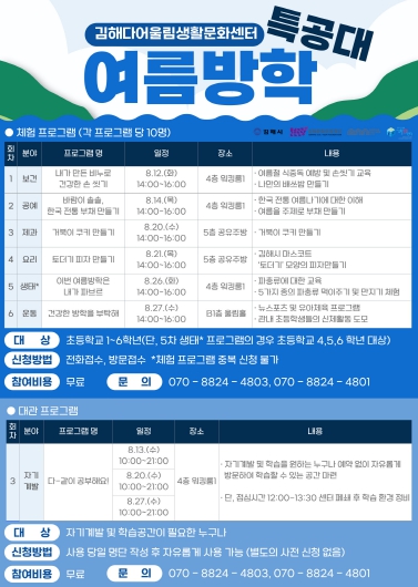 김해다어울림생활문화센터 관계자는 “이번 여름방학 프로그램이 아이들에게는 소중한 추억이 되고, 보호자들에게는 유익한 돌봄 자원이 되기를 바란다”고 말했다.
