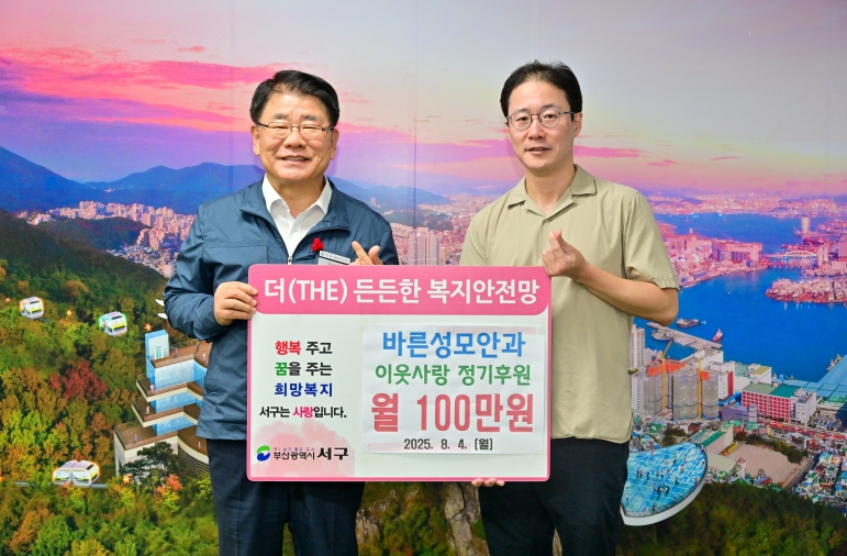[뉴스노크=김인호 기자] 바른성모안과(원장 최우석, 서구 충무동 소재)는 지난 4일, 서구의 어려운 어르신들을 돕기 위해 매월 100만 원의 정기 후원으로 따뜻한 나눔 실천에 앞장서고 있다.