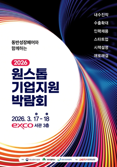 [뉴스노크=김인호 기자] 대구광역시는 지역기업의 지속 가능한 성장을 지원하기 위해 오는 3월 17일부터 18일까지 EXCO 서관 3층에서 열리는 ‘동반성장페어와 함께하는 2026 원스톱 기업지원박람회’ 참가기업을 모집한다.
