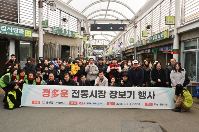 [뉴스노크=김인호 기자] 울산중구가족센터가 한국동서발전㈜의 후원을 바탕으로 3월 7일 오전 10시 학성새벽시장에서 저소득 가정과 함께하는 ‘정多운 전통시장 장보기 행사’를 진행했다.