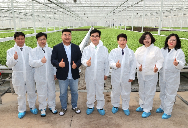 협약 이후 윤건영 교육감은 H·A 한상태 대표와 함께 스마트팜 시설을 둘러보고 운영 현황을 확인했다.
