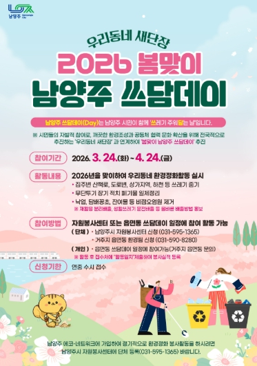 남양주시, 우리동네 새단장 2026 ‘봄맞이 남양주 쓰담데이’집중 운영