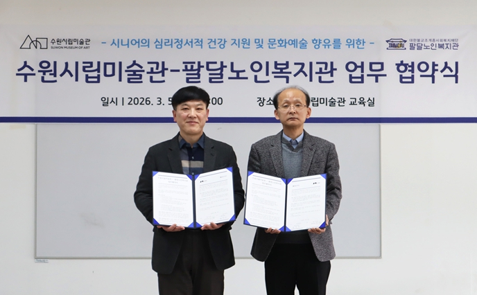 [뉴스노크=김인호 기자] 경기도 수원시립미술관과수원시 팔달노인복지관은 5일 관내 시니어의 문화예술 향유 활성화를 위한 업무협약을 체결했다.