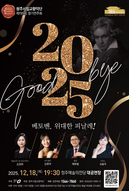 [뉴스노크=김인호 기자] 청주시립교향악단은 오는 12월 18일 오후 7시 30분 청주예술의전당 대공연장에서 제199회 정기연주회 ‘Good bye 2025 – 베토벤, 위대한 피날레!’ 공연을 개최한다.