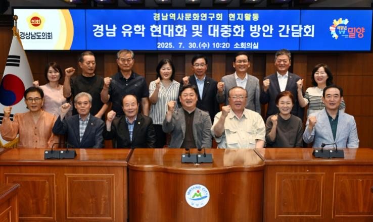 둘째 날에는 밀양시청 소회의실에서 '경남 유학 현대화·대중화 방안' 간담회를 열고, 유림·향토청년회 등 지역 공동체, 도·시 관계자와 함께 실행 가능한 정책과제를 점검했다.