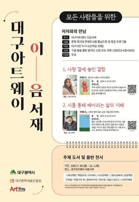 [뉴스노크=김인호 기자] 대구문화예술진흥원이 운영하는 대구아트웨이는 7월 28일부터 11월 1일까지 도서·음반 전시 ‘모든 사람들을 위한’을 진행한다.