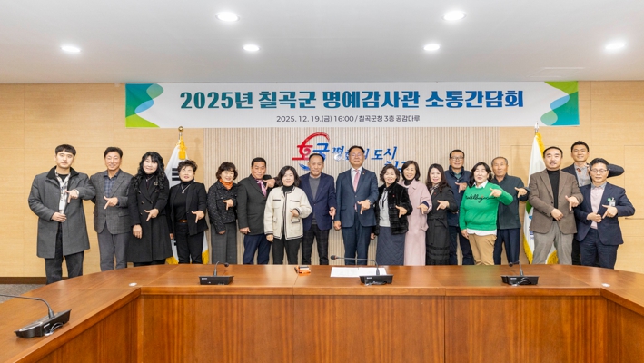 [뉴스노크=김인호 기자] 칠곡군은 지난 19일 군청 3층 공감마루에서 군민이 참여하는 열린 감사체계를 강화하고, 현장의 다양한 의견을 군정에 반영하기 위해 2025년 칠곡군 명예감사관 소통간담회를 개최했다.
