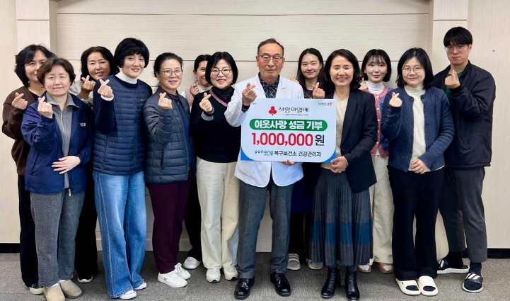 함인석 북구보건소장은 “직원들의 작은 정성이 지역사회에 따뜻한 희망의 불씨가 되길 바란다”며, “시민의 건강을 지키는 본연의 임무는 물론, 공공기관으로서 사회적 책임을 다하기 위한 나눔 실천에도 적극적으로 앞장서겠다”고 밝혔다.