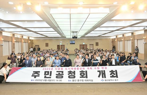 [뉴스노크=김인호 기자] 울산 중구가 8월 6일 오후 2시 중구청 대회의실에서 ‘다운동 정다운 정원마을 도시재생사업 활성화 계획’ 변경 수립을 위한 주민공청회를 개최했다.