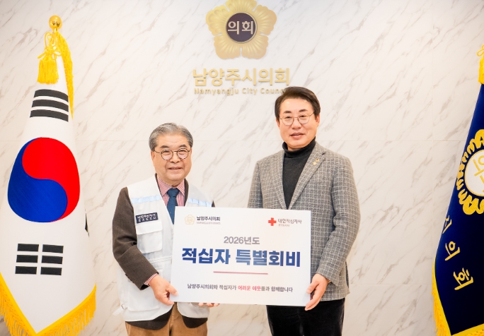 남양주시의회는 23일 의장실에서 대한적십자사 경기도지사에 2026년도 적십자 특별회비를 전달했다.