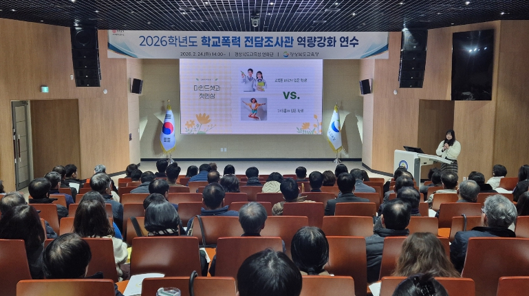 [뉴스노크=김인호 기자] 경북교육청(교육감 임종식)은 24일 본청 행복지원동 연화관에서 도내 학교폭력 전담조사관 150명과 지역별 업무 담당자 22명 등 총 170여 명이 참석한 가운데 ‘2026학년도 제로센터 학교폭력 전담조사관 역량 강화 연수’를 개최했다고 밝혔다.